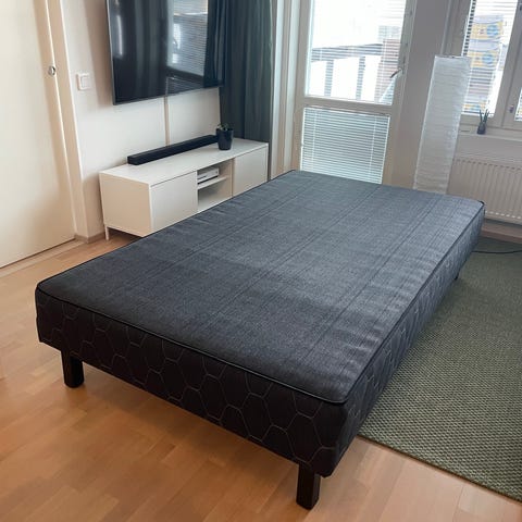 Myydään sängyn runko, 120×200 cm. Koiratalous. Myydään ilman ensimmäisen kuvan ohutta patjaa. Vain nouto.