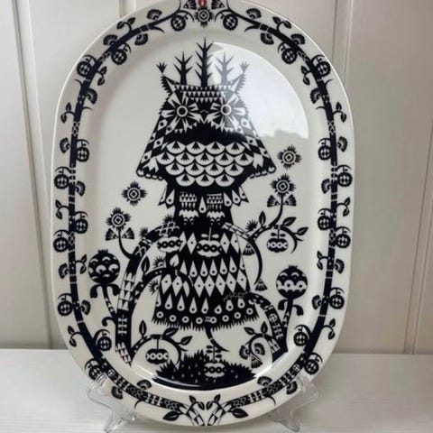 Ovh. 39,90 €, vastaava tuote: https://www.iittala.com/fi-fi/kattaus/lautaset-ja-kulhot/lautaset/taika-lautanen-27cm-musta-1011639