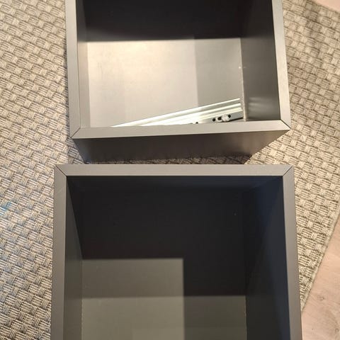 Myydään Ikea Eket-laatikot seinäkiinnikkeillä. 2kpl valkoisia, 35x35x25 ja 1kpl beige/harmaa 35x35x35.