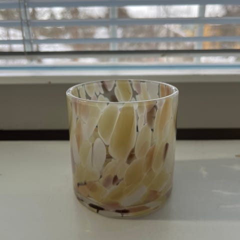 Myydään lasiruusu tuikkukynttiläjalka / tuikkukippo. Nouto Ullanlinnasta.