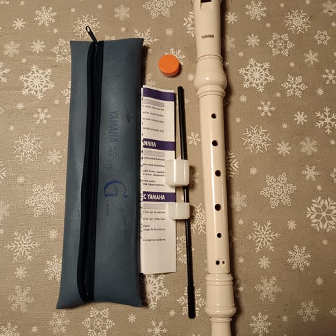 Uudenveroinen Yamaha alttonokkahuilu varusteineen.