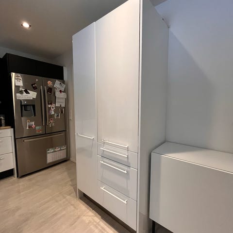 4 kpl integroidun kylmälaitteen tai uunin yläpuolisen tuuletusraollisen hyllyn takareunaan estämään tavaroiden putoamista hyllyltä koneen taakse. Kiinnitys ruuveilla hyllyyn (ruuvit ei sisälly).