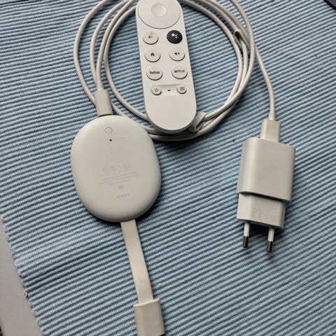 Google Chromecast mediasuoritin musta. Laite liitetään television HDMI-porttiin ja saa virtansa USB-liitännästä. Soveltuu yhteensopivien laitteiden sisällön, kuten videoiden ja musiikin, suoratoistoon televisioon langattomasti samassa verkossa olevilta puhelimilta, tableteilta tai tietokoneilta.