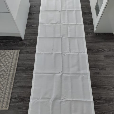 Myytävänä kolmet valkoiset (tai vaaleanharmaat) verhot. Verhot ovat jämäkät, muovipintaiset. Yhdessä niistä on pieni tahra. Mitat: 100 cm x 210 cm.
