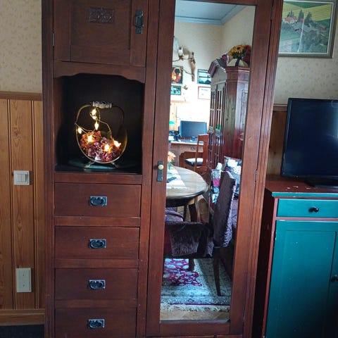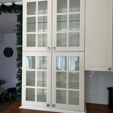 Uusvanha ihana korkea keittiönkaappi pois muutossa. Askosta ostettu. Saa kahteen osaan eli helppo kuljettaa. Ei kovin painava. Nouto. Omat kantajat. Kissatalous.