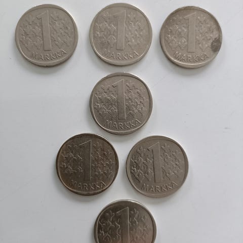 Markkoja jouten. Tarjoa. 29kpl markan seteliä. 2kpl viiden markan seteliä. Joitain kolikoita. Tarjoa.
