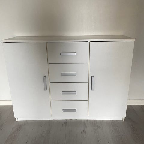 Ehjä kolmen laatikon lipasto mutta käytön jälkeä näkyy päällä.