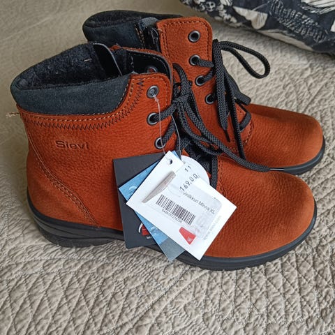 Myydään Sievin talvikengät, kokoa 38. Kengissä on vaaleanruskea huopa- päällinen ja tummemmat vahvikkeet kärjessä ja kannassa. Nauhakiinnitys kiertää varren ympäri ja sivussa on vetoketju helpottamassa pukemista. Pohja on kumia tai vastaavaa materiaalia, joka antaa pitoa talvikeleillä. Soveltuvat arkikäyttöön kylmällä säällä.