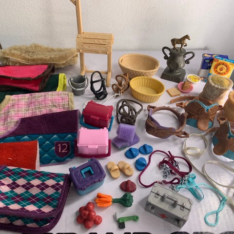 Hyvä kuntoisia Schleich tarvikkeita. Mukana kolme hevosta, yksi hahmo, hevosten tarvikkeita sekä katos. Katoksen kattoluukut avattavissa ja katoksen ”tolpat” on mahdollista irroittaa. Postitus tai nouto onnistuu! Hintaa saa rohkeasti tarjota! :)
