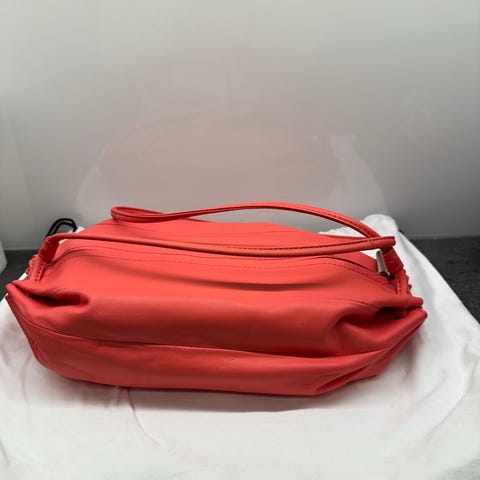 Punaista Unikkokuvioista nahkaa oleva yliolan pidettävä pikkulaukku. Olkahihnan pituus säädettävä 115 - 145 cm välillä. Sisällä vetoketjutasku.