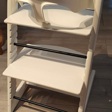 Myynnissä vaalea whitewash stokke tripp trapp syöttötuoli. Tuolin pinnalla löytyy käytön jälkiä, mutta tukeva ja hyvä seuravalle vauvalle.
