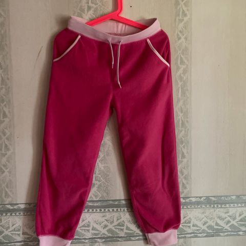 Myydään oikein siistikuntoinen fleeceasu, jossa housut ja takki koossa 110/116.