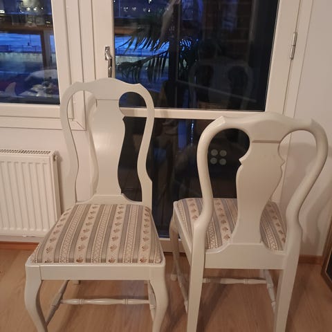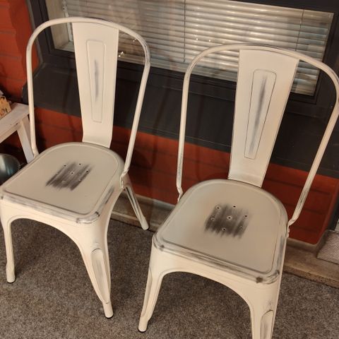Ikean valkoiset jämäkästi tuolit. Maalissa kulumaa.