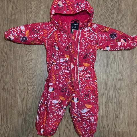 Reiman talvihaalari koko 92. Hyväkuntoinen, vain pientä kulumaa. Kahden lumihiutaleen lämpimyys. Sinisävyinen kuviollinen yläosa ja tummansininen alaosa.