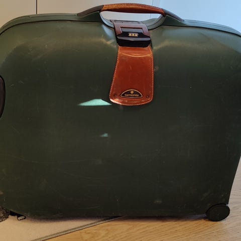 Reissuja nähnyt lentomatkalaukku uuteen kotiin.