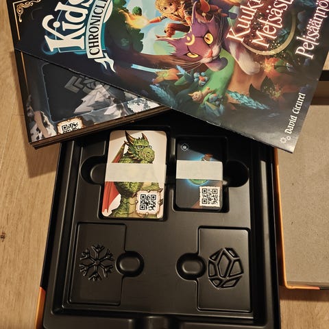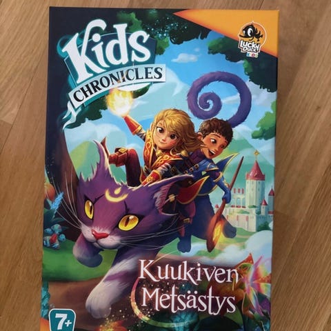 Kids Chronicles Kuukiven metsästys lautapeli. Seikkailullinen perhepeli, jossa pelaajat ratkaisevat tehtäviä ja arvoituksia pelilaudalla ja korttien avulla. Pelissä on kaksipuolinen pelilauta, erilaisia tehtävä- ja tapahtumakortteja sekä peliohjeet. Ikäsuositus alkaen 7 vuotta. Peli soveltuu useammalle pelaajalle yhteiseen tarinankerrontaan ja ongelmanratkaisuun.