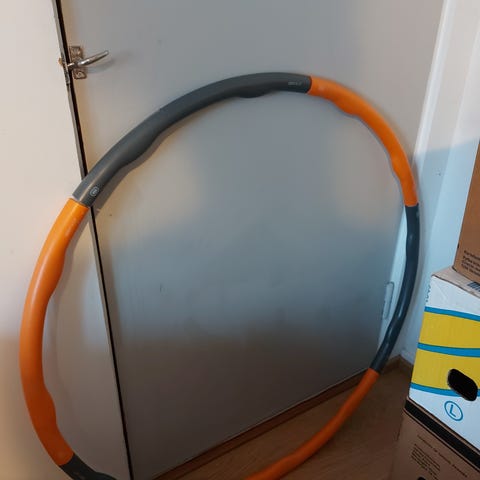 Kevyt hulavanne temppujen tekemiseen. Vanteen halkaisija 95 cm. Väri kulta/valkoinen. Vähänkäytetty.