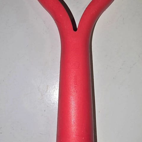 Se Tupperwaren vanhempi kuorijamalli, jossa sileä vaakaterä sekä leveämpi varsi