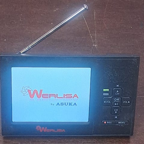 12voltilla ja verkkovirralla toimiva televisio. Kaupanpäälle sisäantenni.