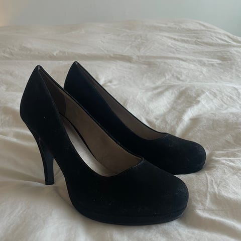 Tamaris korkokengät, koko 38. Väri musta. Erittäin mukavat jalassa. Klassinen, pyöreäkärkinen malli korolla ja kevyellä korokepohjalla. Päällinen sileää materiaalia, kumipohja tarjoaa pitoa. Sopivat esimerkiksi arkeen ja juhlaan.