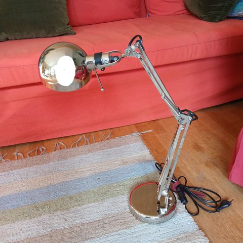 Tyylikäs kirjoituspöytävalaisin. Kääntyvä varjostin ja varsi. 1,6 metrin johto, jossa virtakytkin. Max korkeus 50 cm. Lamppu E14, enintään 40 W (lamppu ei sisälly pakkaukseen, eikä tule mukaan).