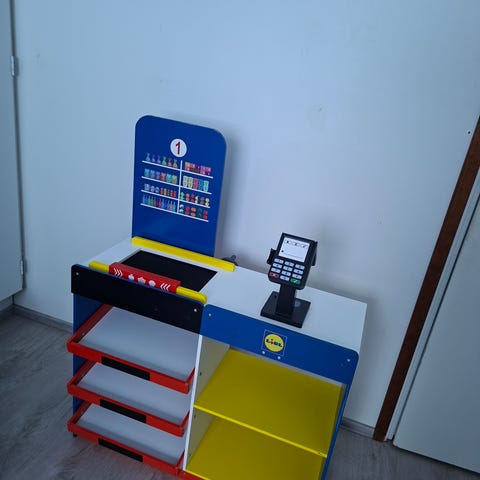 Prisman leikkikauppa johon muutamia ostoksia mukaan. Viivakoodipiippari piippaa ja laskin toimii