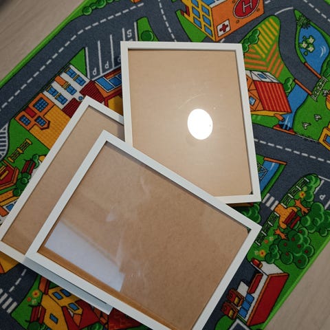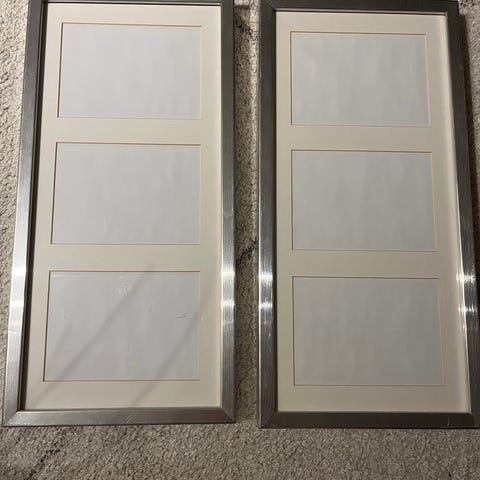 3 valkoista kuvakehystä. Koko: 61x91 cm. Sisältävät kehyskartongin ja muovisen suojalasin.