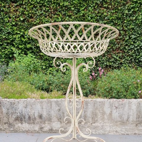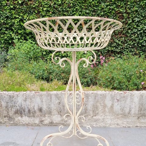 Upeita taotusta rautasta valmistettuja seisovia kukkalaatikoita / kukkalaatikoita. Ruukkujen pidikkeet. Seisovat rautapilarit kasveille. Täydellisiä roikkuville kasveille. Setti sisältää kaksi seisovaa osaa, suuren kasvilaatikon ja pienemmän. Suuren standardin mitat ovat seuraavat (+/-):Korkeus: 100 cm / 40 Leveys: 38 cm / 15,2 Kaikki tuotteemme pakataan huolellisesti ja lähetetään vakuutettuna.Etsitkö lisää erikoistuotteita?