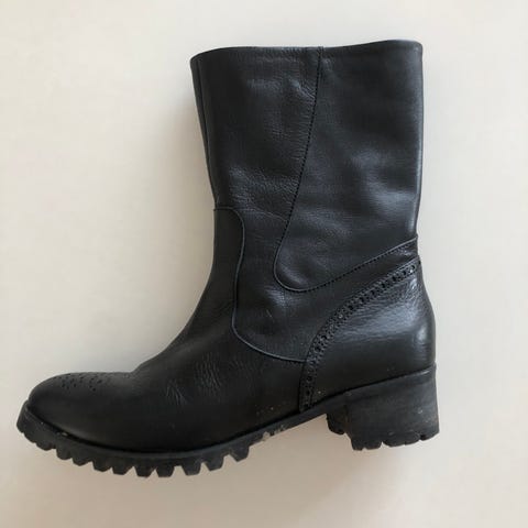 Mustat Chelsea-tyyliset nahkanilkkurit reikäkuvioinnilla. Merkki S&G. Venyke ja vetolenkki. Hyvä kunto. Koko 39, sisämitta 24,5cm.