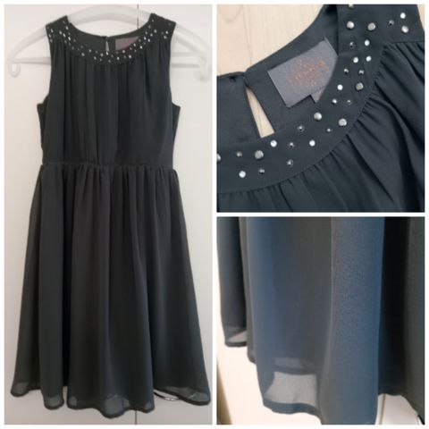 Tytöille paitamekko koko 134 musta-valkoinen