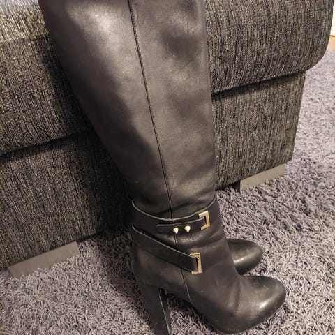 Myyntiin upeat, mustat naisten korolliset nahkasaappaat. Kunto erittäin hyvä, vähän käytetyt ja kunnolla huolletut. Korko on tukeva, joten näillä on mukava kävellä. Kangasvuori.