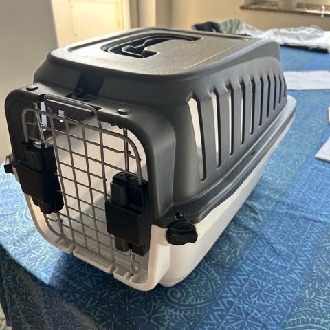Lähes käyttämätön pienen koiran/kissan kuljetuskoppa. Pituus 42 cm. Ostettu perhoskoiran pennulle. Lähes uuden veroinen. Hinta 15 e. Mahdolliset postit lisätään.