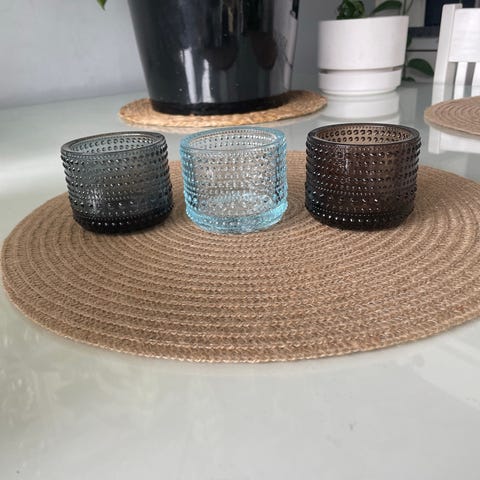 Todella hyvässä kunnossa olevat iittalan kastehelmi tuikkukipot. Väri harmaa.