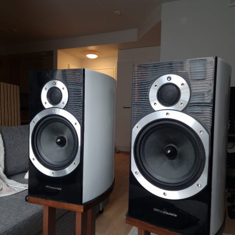 Wharfedale Diamond 10.6 lattiakaiuttimet mustassa viimeistelyssä.