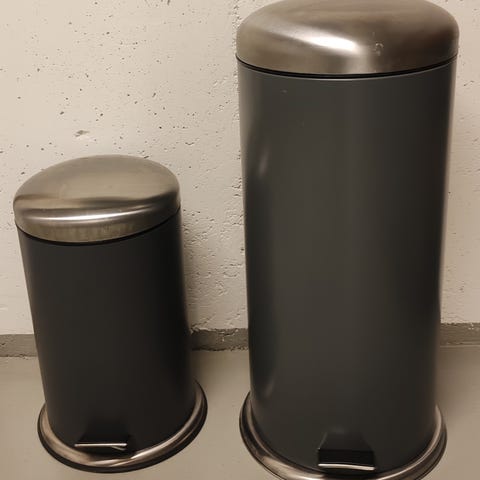 Metallinen roskis, jossa on poljinmekanismi kannen avaamiseen. Ulkopinta on musta ja kupolimainen kansi sekä sisäosa ovat terästä. Sopii esimerkiksi keittiöön tai kylpyhuoneeseen jäteastian tai lajitteluastian käyttöön.