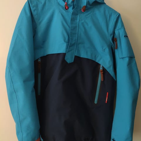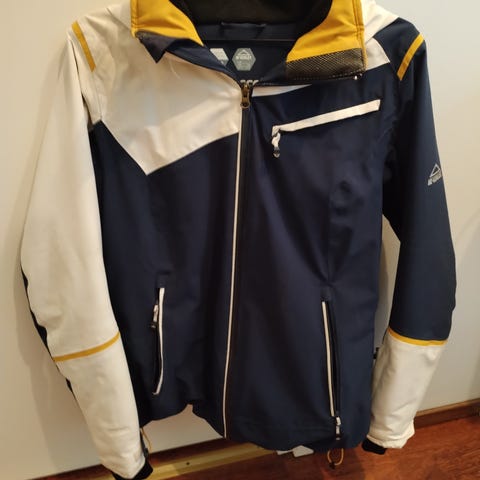 Klimamock ulkoilutakki, koko 38. Väriltään kirkkaan vihreä, sisäpuolelta tummanharmaa. Takissa on vetoketjulliset taskut edessä sekä hihassa, lisäksi edessä täyspitkä vetoketju. Mallissa on huppu ja kiristettävä helma, jotka auttavat suojaamaan tuulelta ja sateelta. Sopii arki- ja ulkoilukäyttöön vaihteleviin sääolosuhteisiin.