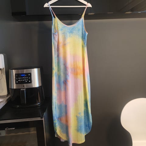 Kaunis valkoinen kesämekko jossa kauniita värillisiä kukkia. Olkaimista saa kiristettyä. Koko XL (44-46) mitään ei näy läpi, alkoinen alushame alla.