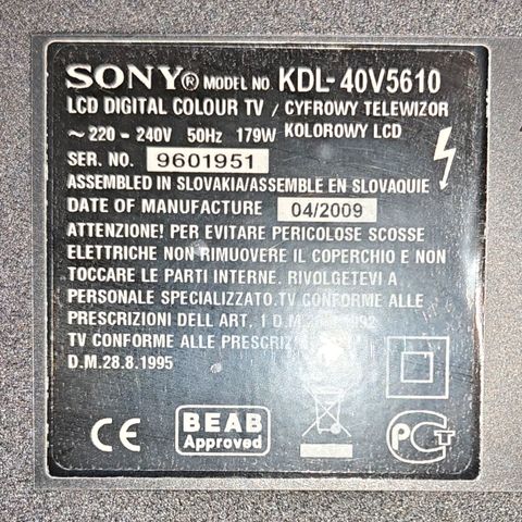 Sony KDL-24EX320 LCD-televisio, ruutukoko 24 tuumaa. Väri valkoinen. Malli on LCD digital colour TV, virransyöttö 220–240 V ~ 50 Hz, tehonkulutus 62 W. Takapaneelissa useita liitäntöjä, mm. HDMI-sisääntulot, SCART, komponentti- ja komposiittivideoliitännät sekä ääni- ja antenniliitännät. Sivussa mm. VGA-liitäntä ja CI-korttipaikka. Soveltuu esimerkiksi pieneen olohuoneeseen, keittiöön tai makuuhuoneeseen perus-TV-käyttöön ja ulkoisten laitteiden, kuten digiboksin, pelikonsolin tai DVD-soittimen liittämiseen.