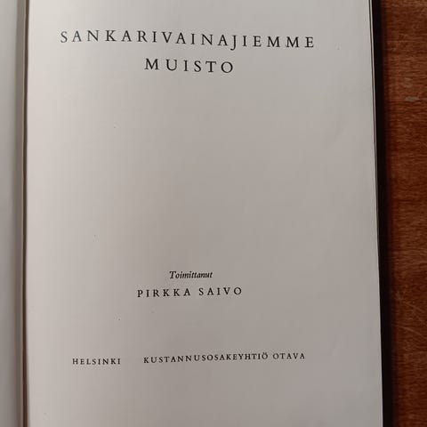 Tien varrelta rauhaan ( 1968 ) Pehmytkantinen kirja käsittelee Suomen sotamuistomerkkejä ja sankarihautoja. kirjassa käsitellään muun muassa sankarihautausmaiden ja taistelumuistomerkkien taustaa, aikaa ennen maailmansotaa 1914–18, itsenäisyystaistelun 1918 muistomerkkejä sekä työtä ja jatkoa muistomerkkien vaalimisessa. Kansissa käytönjälkiä, muutoin kirja on hyväkuntoinen ja siisti.