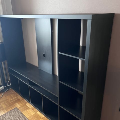 Annetaan pois muuton alta hyväkuntoinen Hylly TV tasoineen, hakija hoitaa hyllyn kuljetukset.