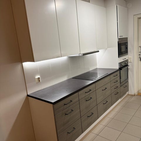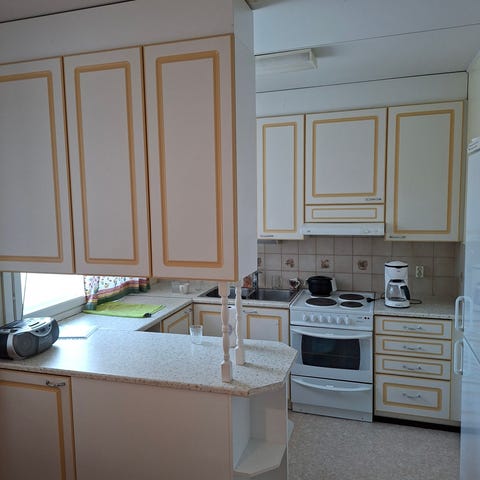 Puran keittiön vkon 10 aikana. Mukaan saa kiintokalusteista noutoa vastaan sen, mikä ehjänä on saatu irti. Keittiössä täyspuiset kaapistot ja alkuperäiset Leea-salvat. Lieden saa myös mukaansa. Jääkaappi ja hana ei kuulu.