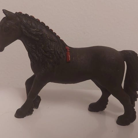 Mukaan friisiläinen hevonen Arembra, tuttu myös Rambon tallista. Hevosessa jotain pientä jälkeä toisella kyljellä, näkyy kuvassa. En ole kokeillut poistaa. Ehjä kuitenkin.