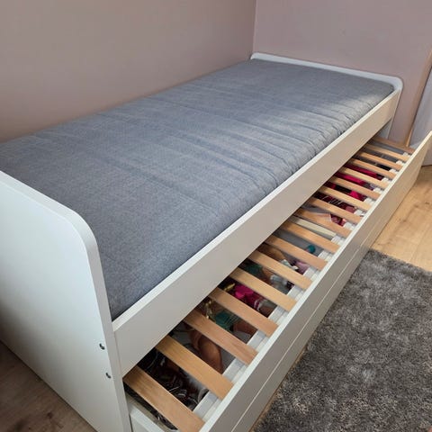 IKEA SLÄKT yhden hengen lastensänky valkoinen säilytyslaatikoilla