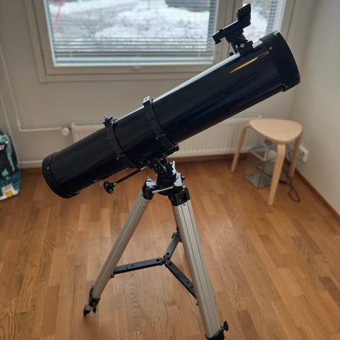 JS observatory peilikaukoputki 1000/200. Peili hyvä, kaikki toimii. 2xbarlow, 9 ja 15 mm okulaarit ja puhelinadapterissa (Ursa) 20 mm okulaari. Mieluummin pakettina.