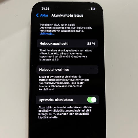 Apple iPhone 13 älypuhelin musta kaupan. Joka päiväsestä käytöstä hyvä puhelin myyntiin uuden tieltä. Kapasiteetti niinku kuvassa näkyy niin 87 rosenttia eli kestää akku vielä hyvin. Mukaan laturi ja panssarilasi. Paikoillaan ehyt panssarilasi ja musta suojakuori. Tarjouksiakin kuunnellaan!