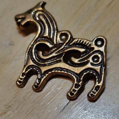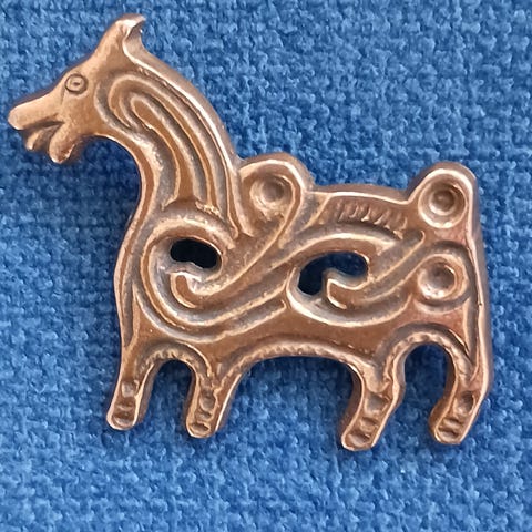 Kalevala pronssinen Suomussalmen hevonen rintakoru. Todella vähällä käytöllä ollut meillä.