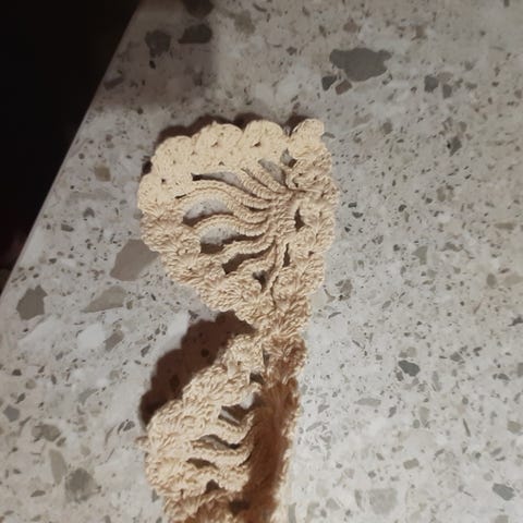 Juuri pesty käsin virkattu luonnon valkoinen pitsiliina ja lisään myös muita pitsiliinoja myyntiin