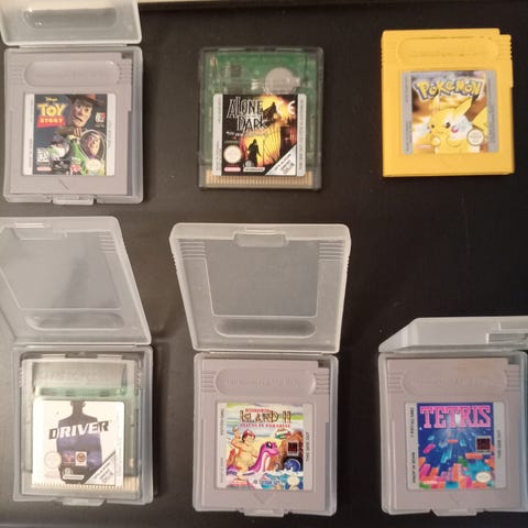 Toimiva gameboy konsoli. Patteriluukun muoviklipsi poikki. 10 peliä pahvikoteloineen ja ohjeineen. Tetris ilman koteloa. Kaikki kerralla.