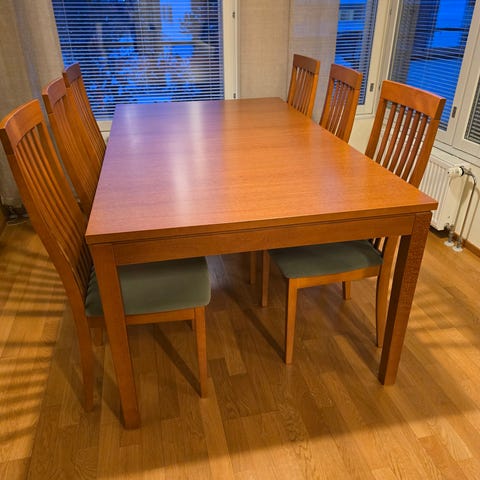 Ruokailuryhmä pöytä ja 4 tuolia puinen ruskea-valkoinen