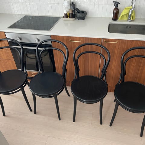 Tuoleissa ei kolhuja eikä muuta moitittavaa, ovat todella hyväkuntoiset!